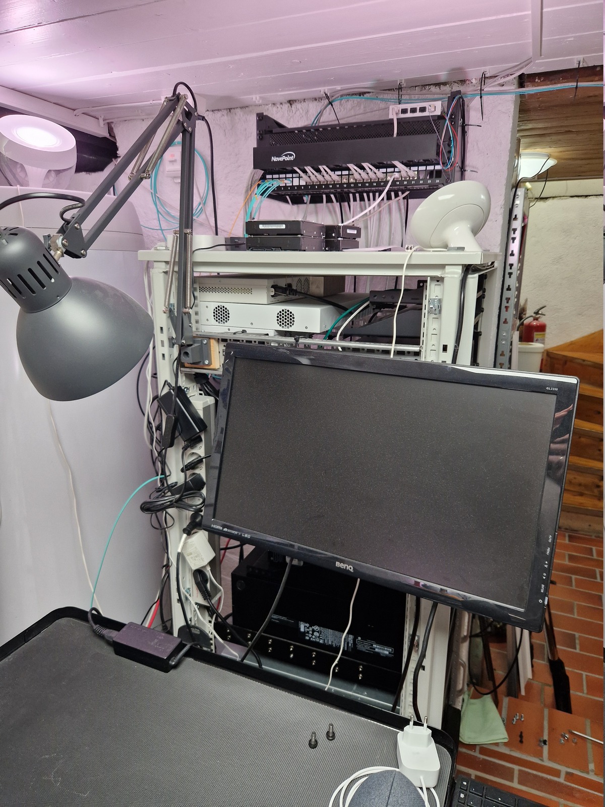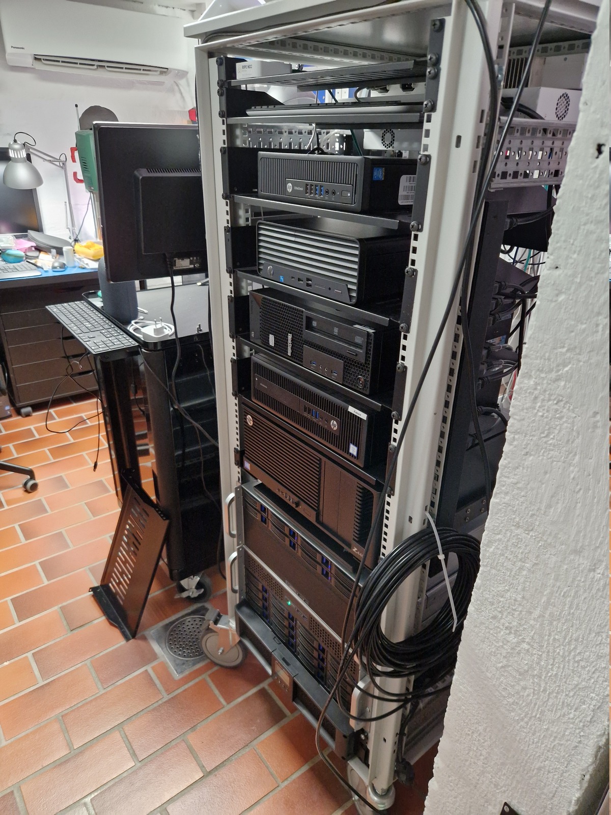 My desk is facing away from the rack, so I am sitting with my back to the rack — which also reduces the noise.