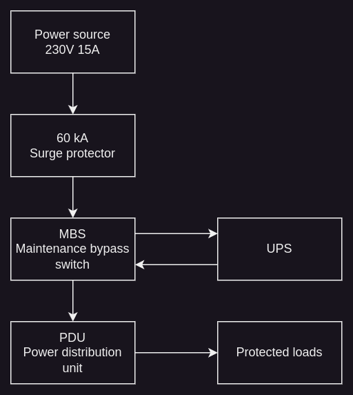 The rack is connected to a 15 A circuit — dedicated to the homelab rack and heat-pump. The supply is protected with a Brennenstuhl Premium-Protect-Line 60 kA surge protector.