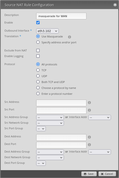 And lastly we need to set NAT masquerade on the eth3.102 interface: