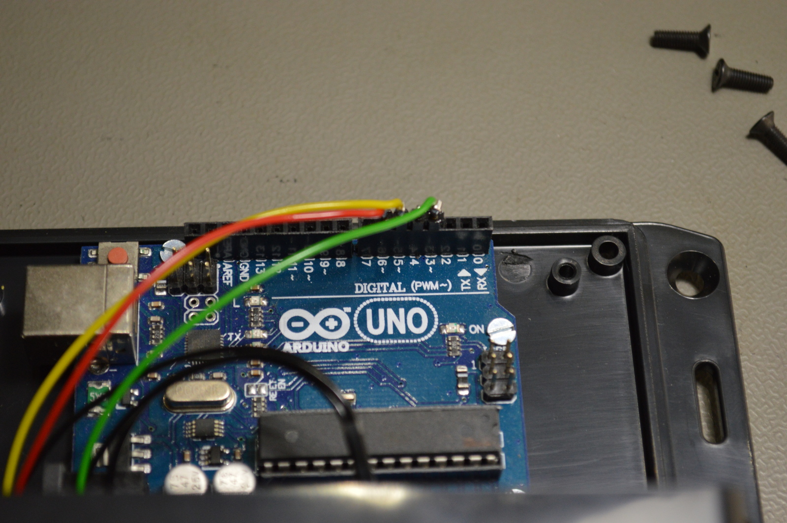 As long as the total current is below 400mA, the Arduino can be powered by the USB connection. This is perfect for our device, as it has to be connected to the computer anyways. One less wire, and adapter, to worry about 🙂