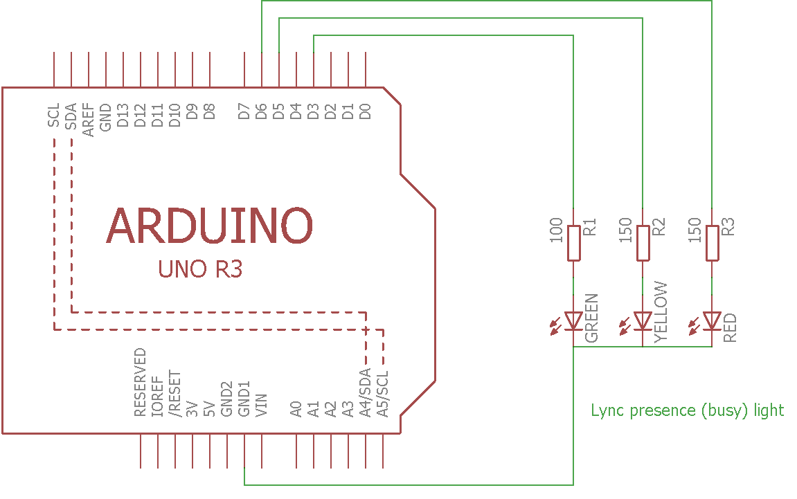 Lync already does a pretty good job with this; it’s red when I am in a meeting, on the phone or just do not want to be disturbed. Yellow when I’m away; I don’t think the away part is a problem, when my chair is empty I am usually away… And green: come on in! Enter the Lync presence light, or busy light if you will. Yeah, there are some you can buy, but where is the fun in that? So I made one using an Arduino board.