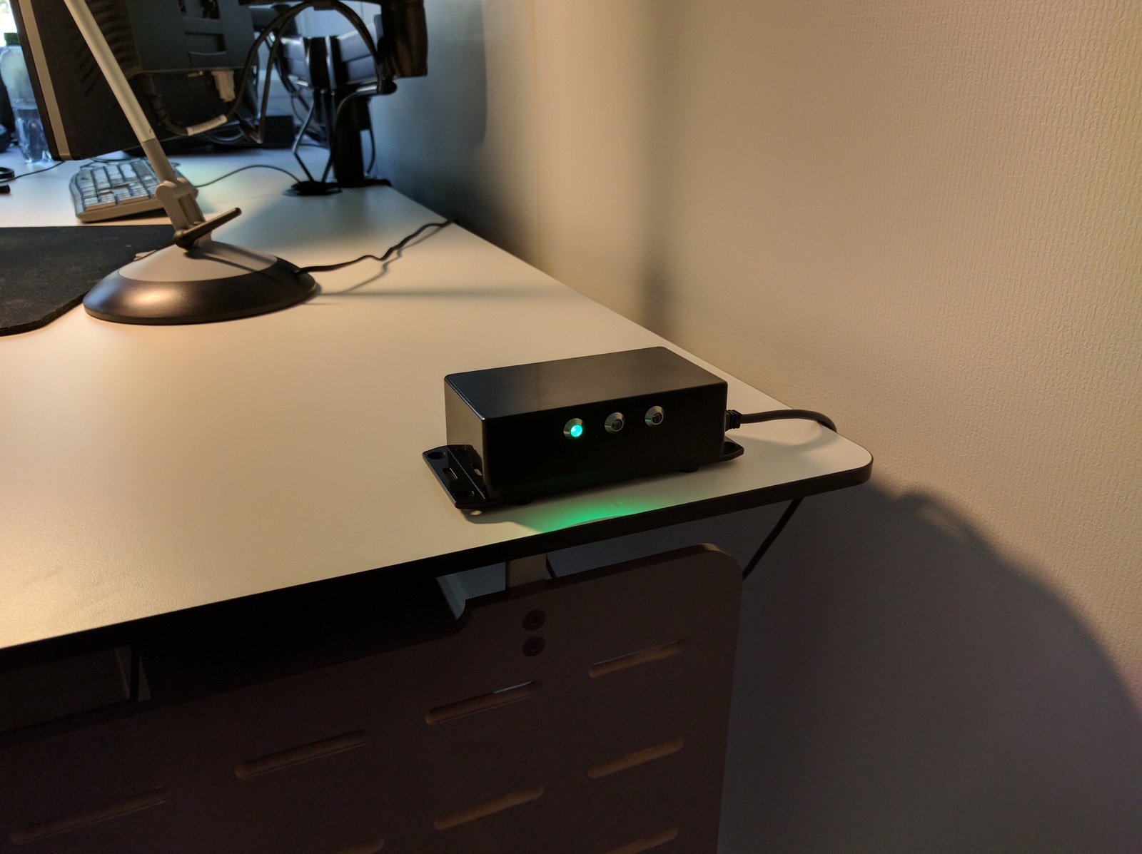 When I am at work, I use headphones; a lot. About half the time I am listening to music, the other half I am talking with someone on Lync (Skype for Business). That made it difficult for my colleagues to know whether I am available or not, so I get interrupted when I’m on the phone. I needed a way to communicate my availability!