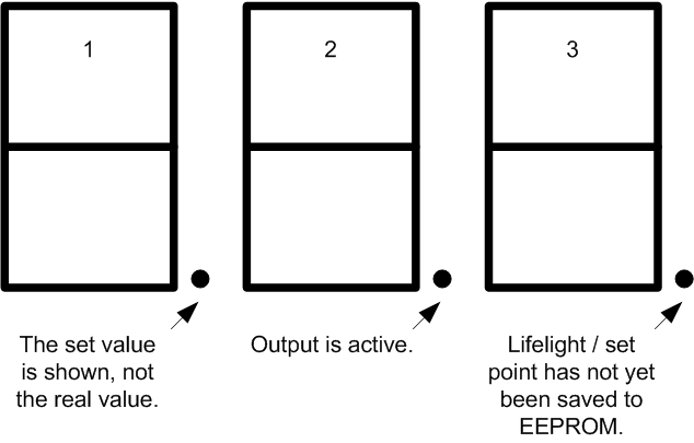 The set point is adjusted using the (on)-off-(on) switches, when adjusting; the display shows this instead of the real value. It is stored in EEPROM making it non-volatile, meaning that it is not lost if the module is without power.