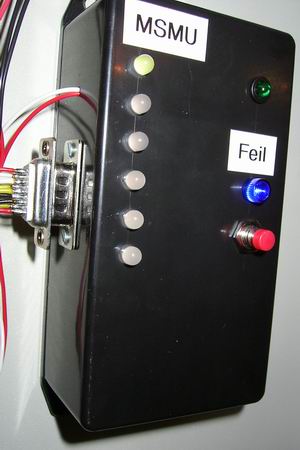 If more than 10 seconds passed, without receiving a heartbeat this monitor unit would go into alarm state. The blue LED would flash, and the green LED corresponding to the failed module would stay solid.