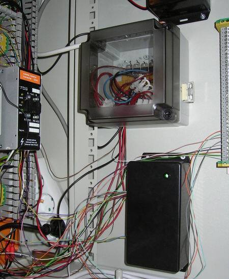Without the emergency supply voltage the emergency stop would not work, so that was important. A N.C relay was connected to this supply, and if the supply dropped the relay would activate the emergency failure input.