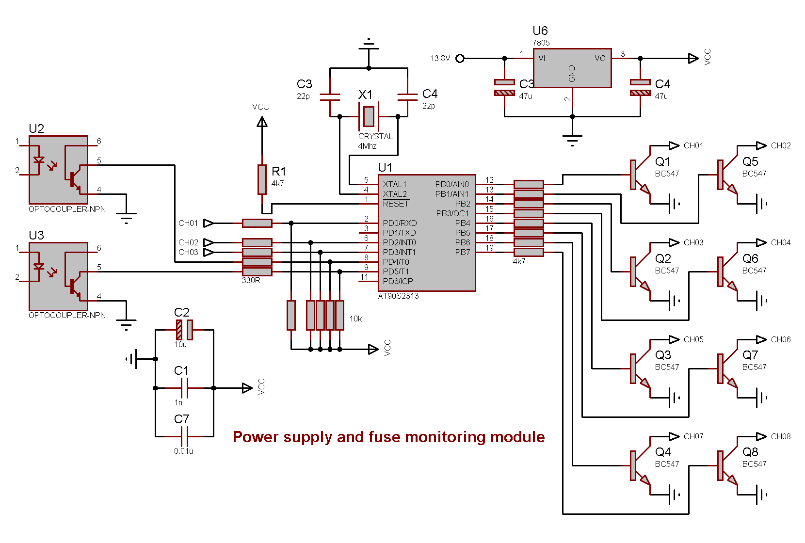 - Power supply and fuse monitoring module, AVR