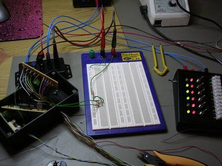 When a situation were detected the corresponding LED would flash, and there was a sound signal. These LED outputs were later also used to notify other modules, like the controller for the stack lights and the sound signals. So it was a daisy chain of connected inputs and outputs.