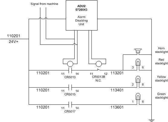 - Stack lights in + (to opto-isolator)