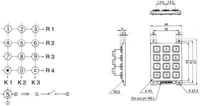 - 1 × Keypad, 12 buttons, 4x3, AK-804