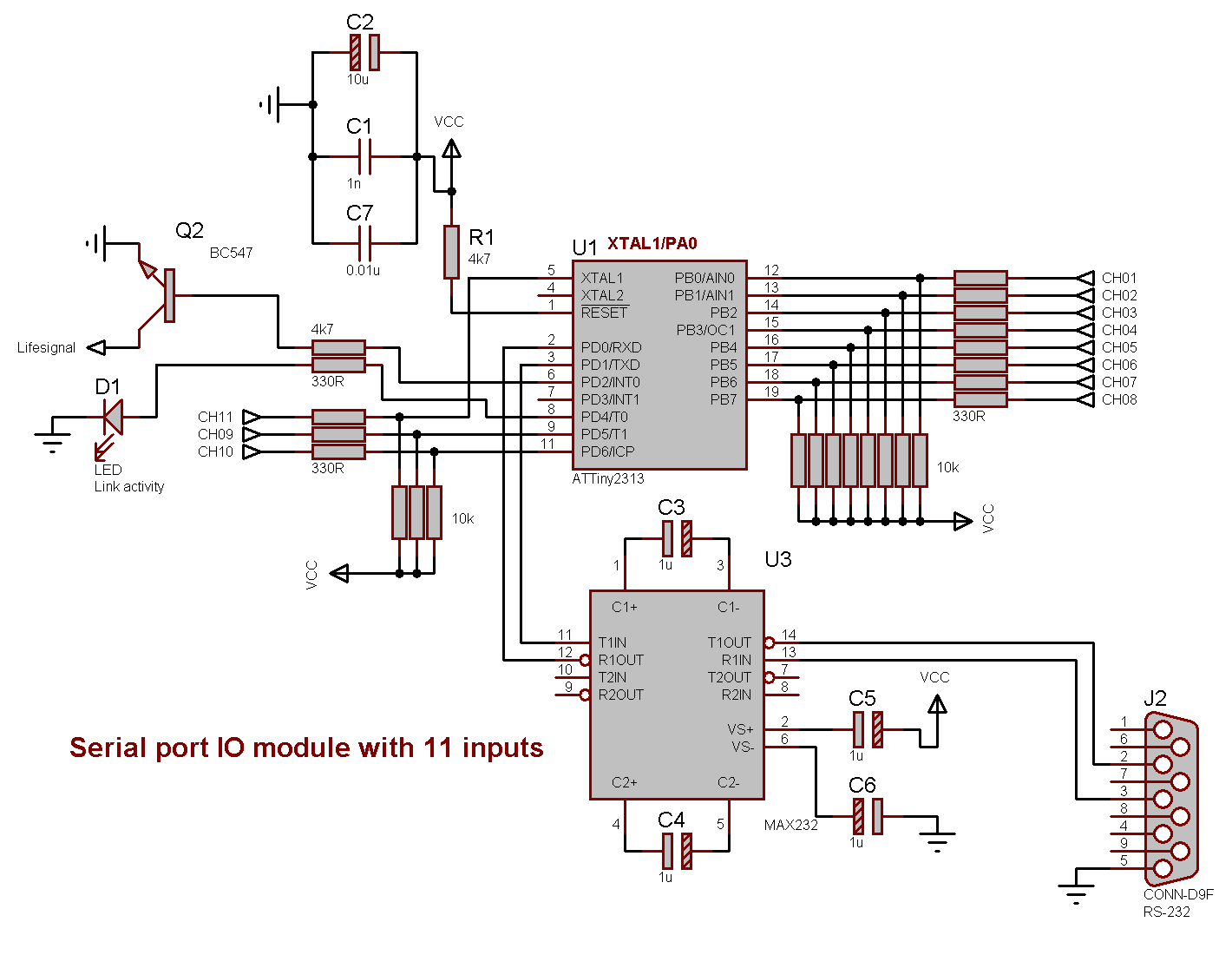 - Serial port I/O module with 11 inputs — AVR