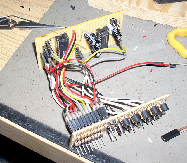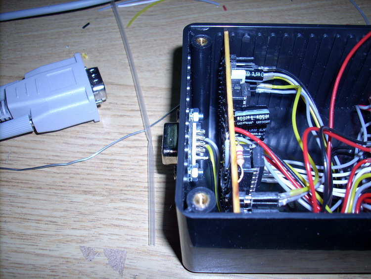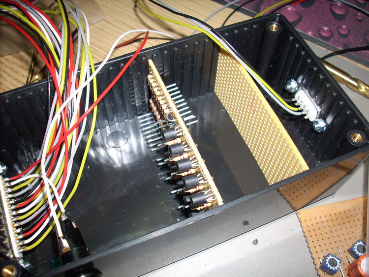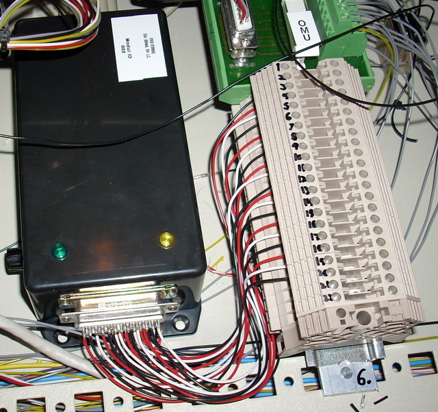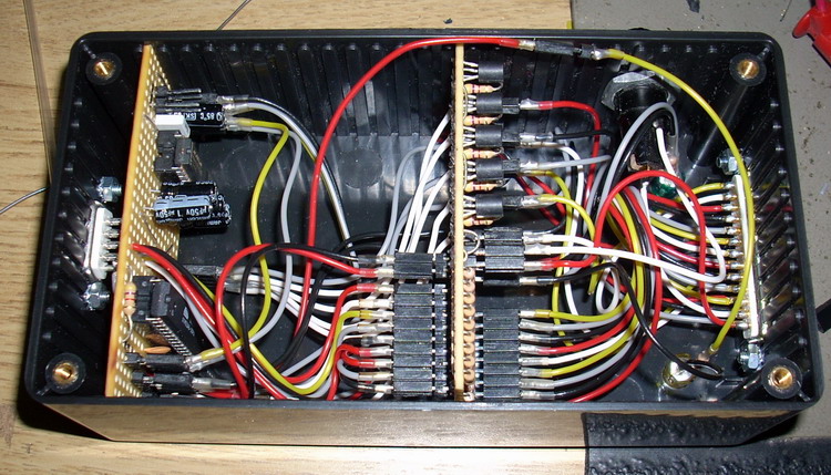 This I/O module provides 9 digital inputs and outputs for the computer serial port. The outputs are open collector — giving GND when activated, max load per channel is 100mA.