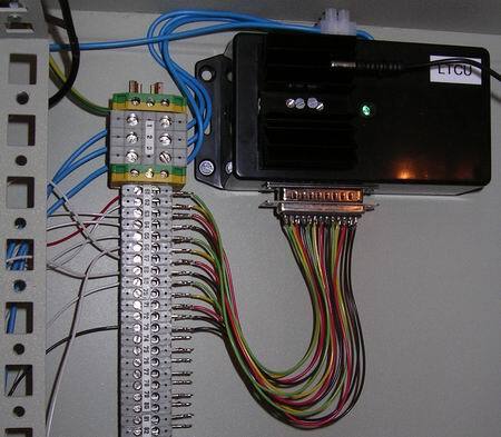 This is the rack box alarm handling unit. It controls the stack light, strobes and horn. Six different signals can be displayed, depending on the alarm situation. If mute is active; no signals is given. The power transistors for the stack light used to be located inside the module, hence the heat-sink. They have been moved to a separate power transistor unit.