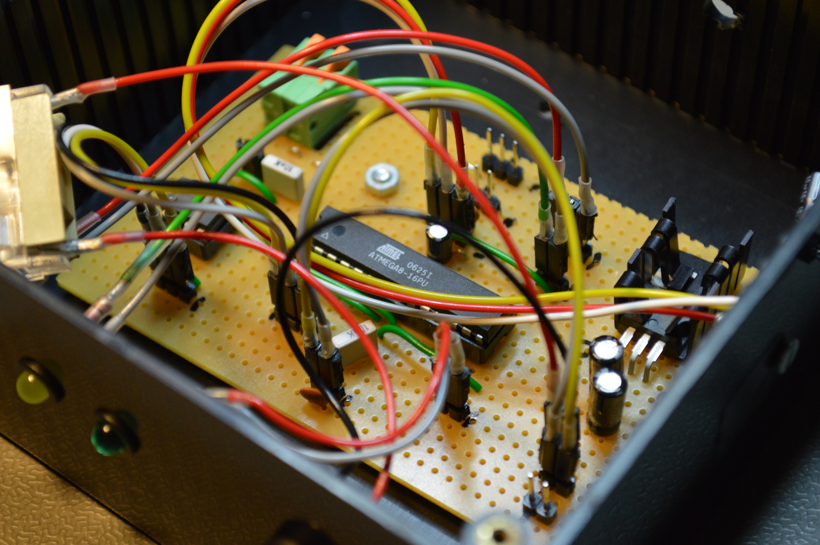 - 1 × AVR ATmega8-16PU, DIL-28, 16 MHz, 23 I/Os