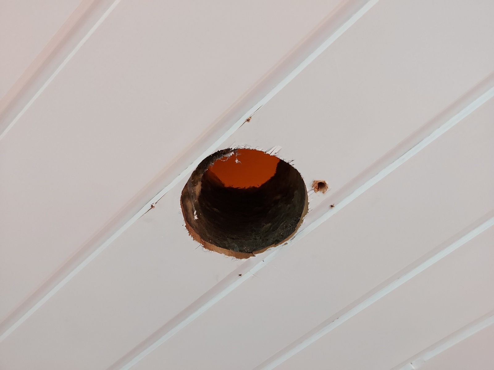 125 mm holes for supply air, in the 2nd floor den and master bedroom ceilings are cut next.