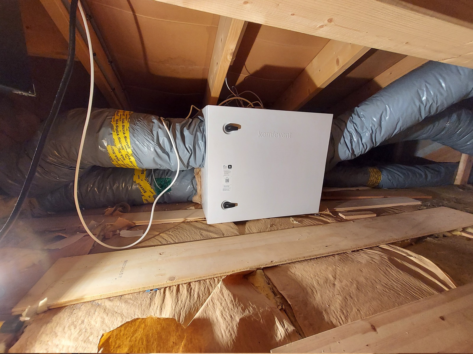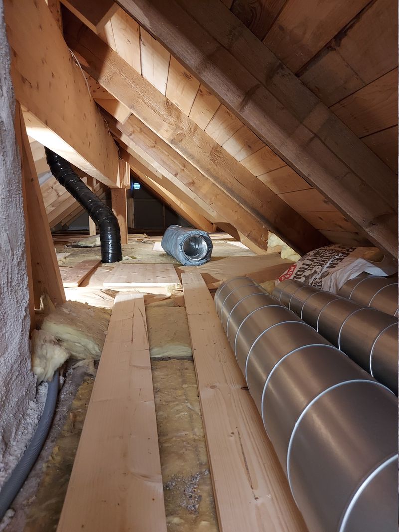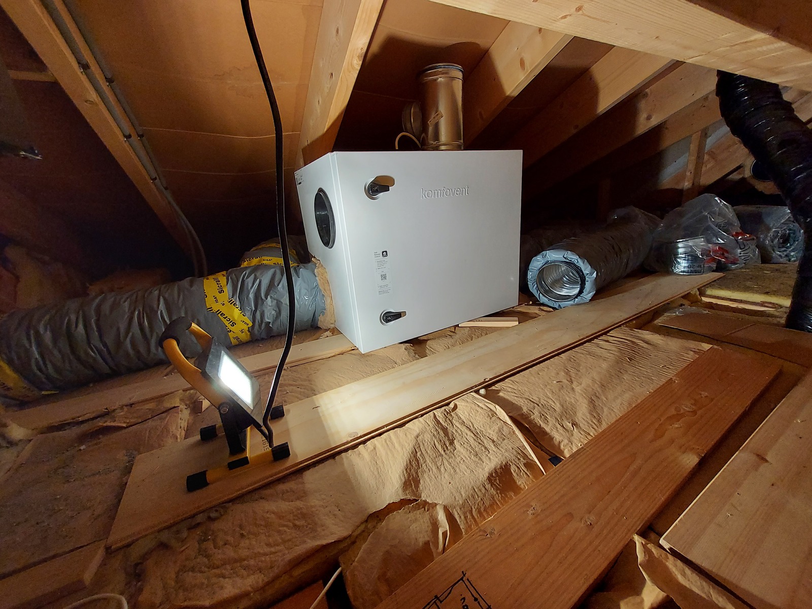 A lot of spiral ducts and ducting accessories, like noise traps, were carried up to the attic.