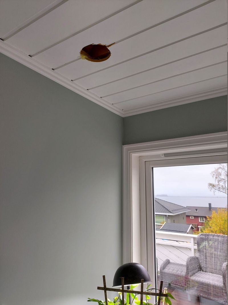 They got started making 125 mm holes in the ceiling, for the supply air vents.