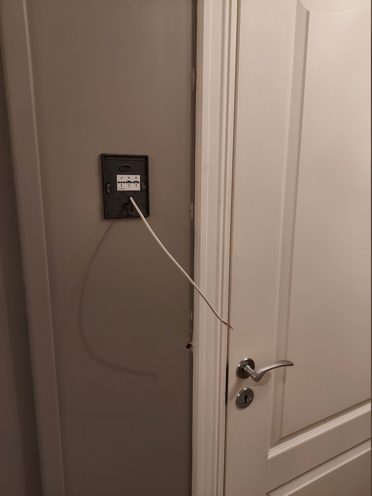 My wife and I spent the evening fishing the control cable to the ventilation user panel — from the attic, and out a 16 mm hole in the 2nd floor hallway wall.