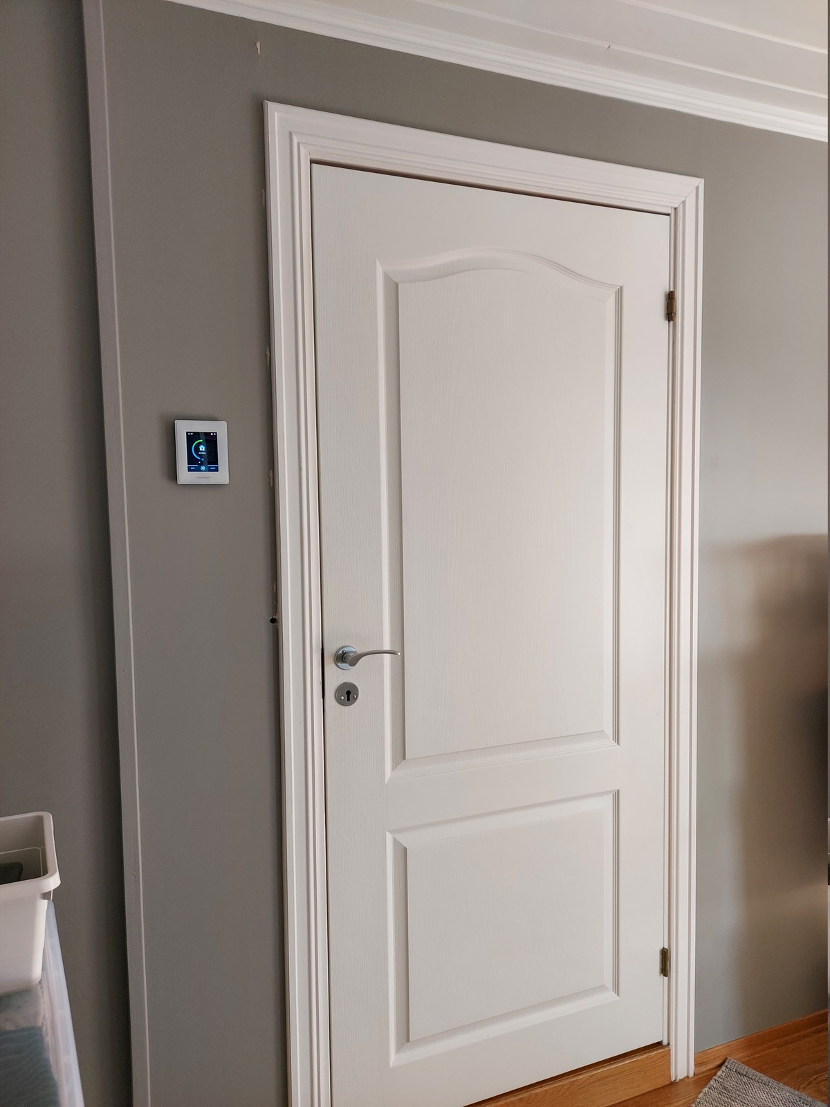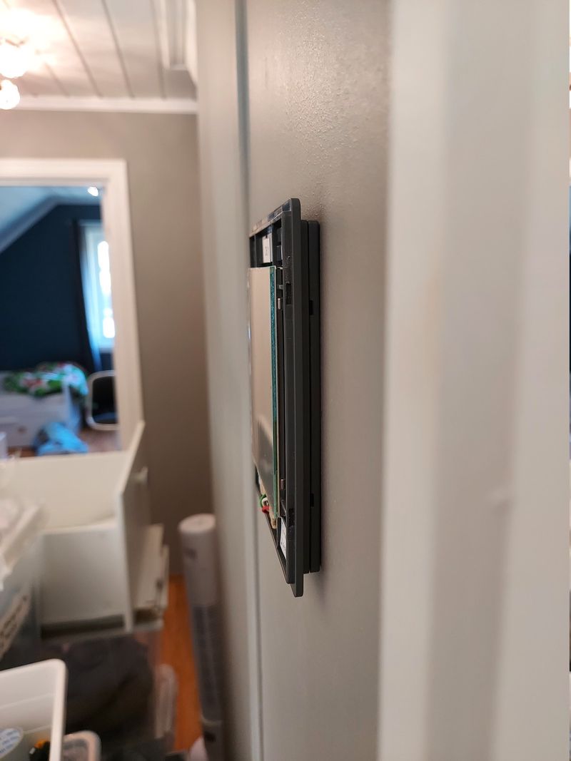 The C6.1 touch panel was installed in the 2nd floor hallway, next to the bathroom door. The panel is surprisingly slim, and looks really nice 🙂