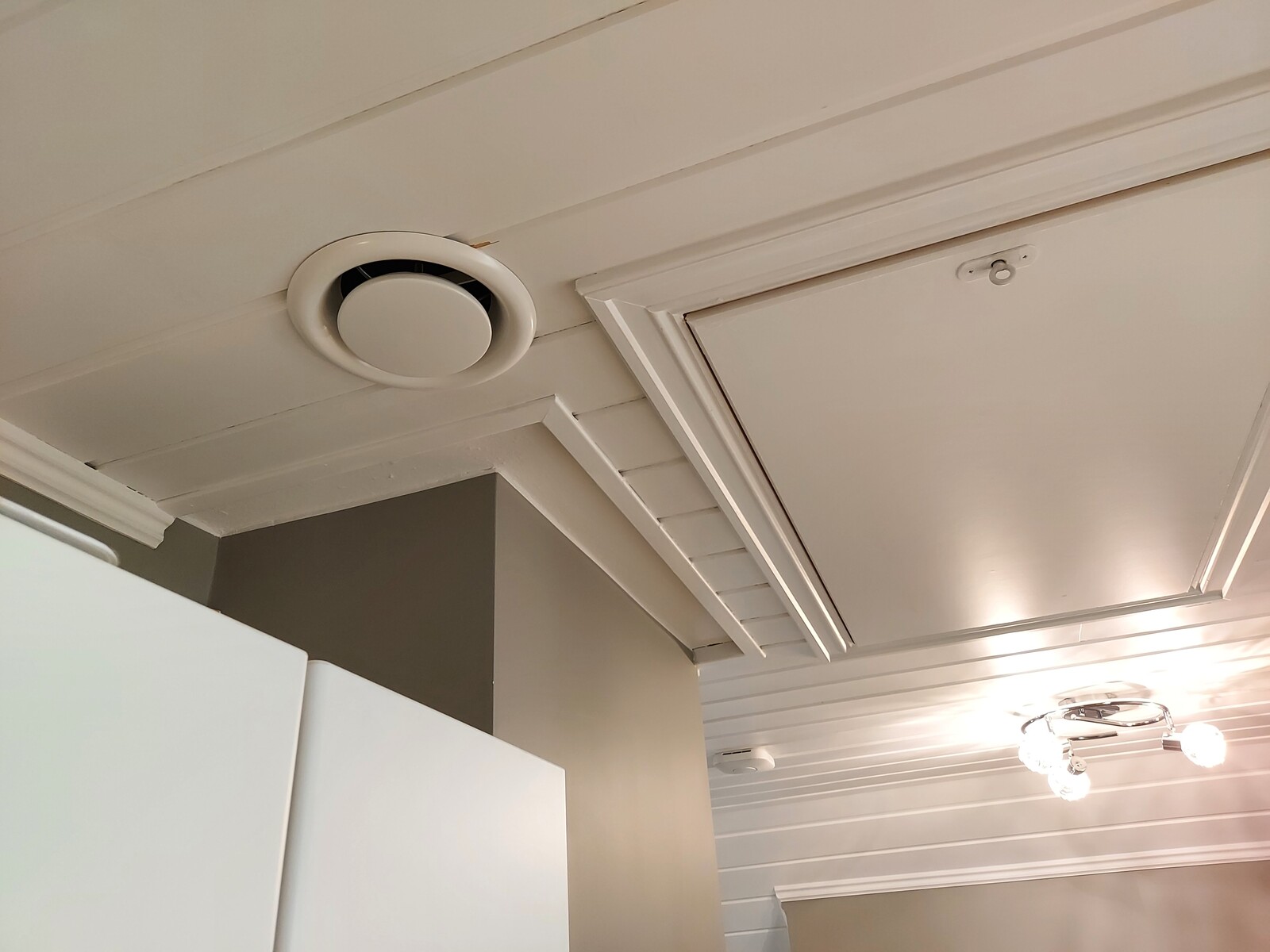 Unfortunately the vent in the bathroom ceiling didn’t quite cover up the screw holes from the old fan, so I need to revisit and fix that later.