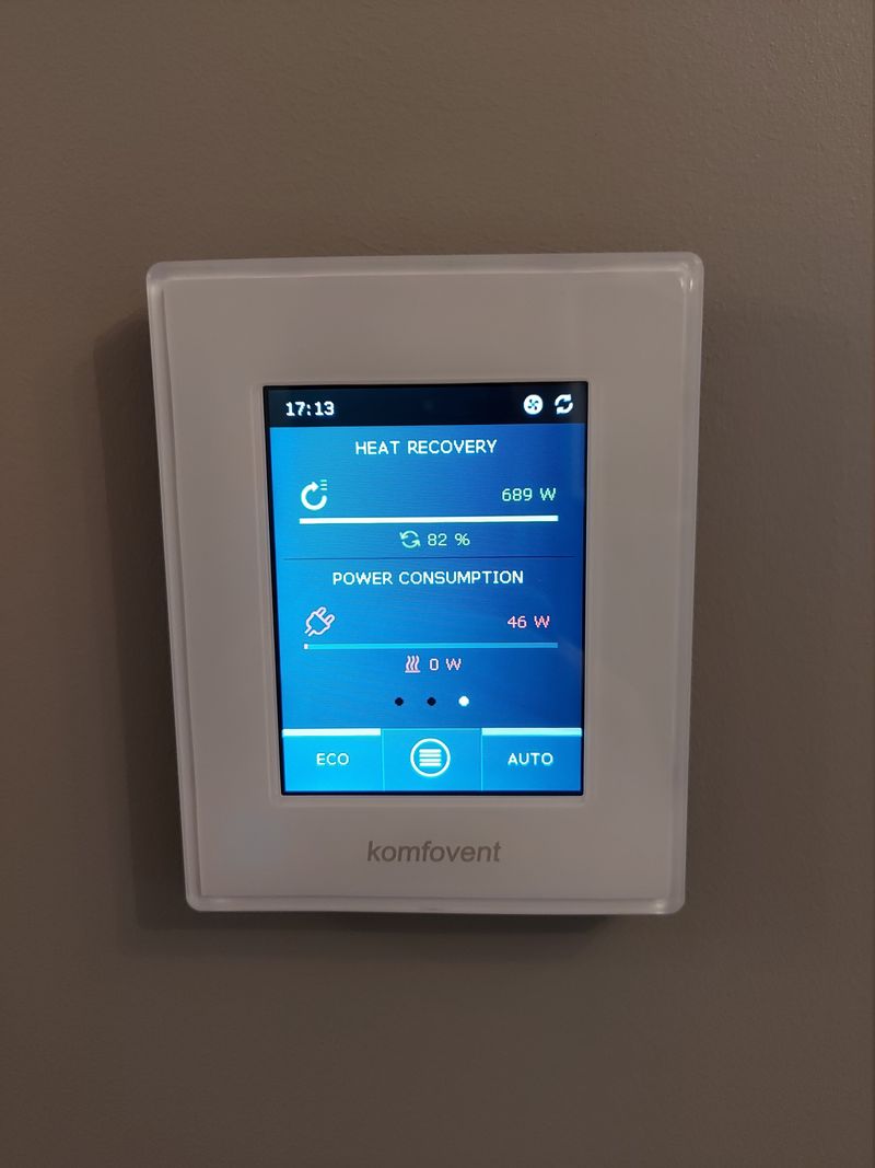 I’ve configured the panel screen saver to show: time, supply air temperature, and outdoor temperature. Practical for choosing what kind of cloths the kids need that day 🙂