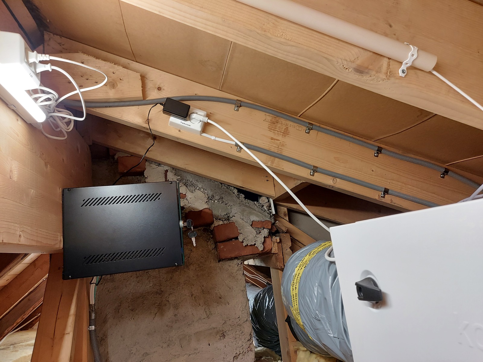 We had a spare fuse in the 2nd floor distribution board, and got an electrician to run a new circuit to the attic. This will be handy for my attic network rack as well 🙂
