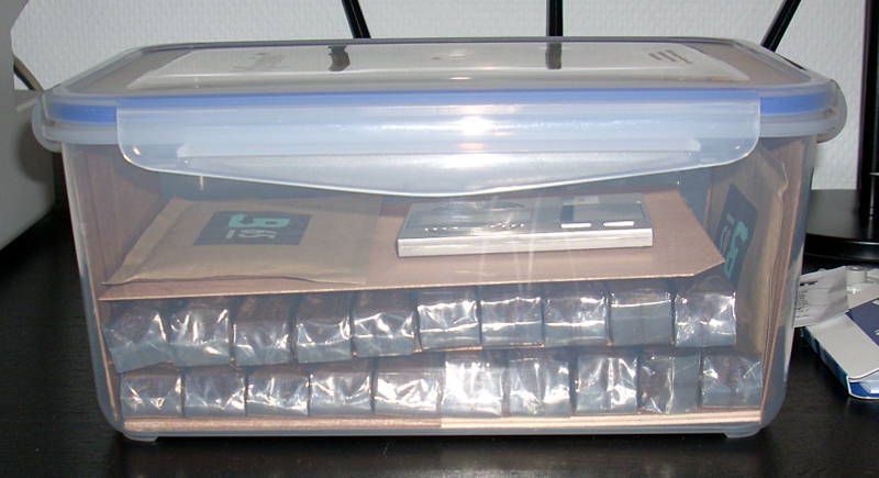 Plastic storage containers has become my preferred way of storing my cigars, so much so that I have sold my humidor. The ones I use measure 26x19×11 cm, and have a volume of 4 liters (about one gallon). They have a gasket in the lid, making them air tight.