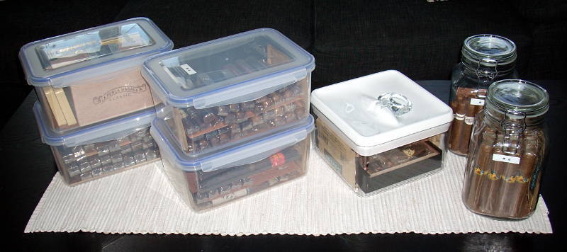 Now I store the plastic containers in the basement, on the bottom shelf in the room adjacent to my home office. The temperature down here is pretty stable, I have a heat-pump to heat or cool if necessary.