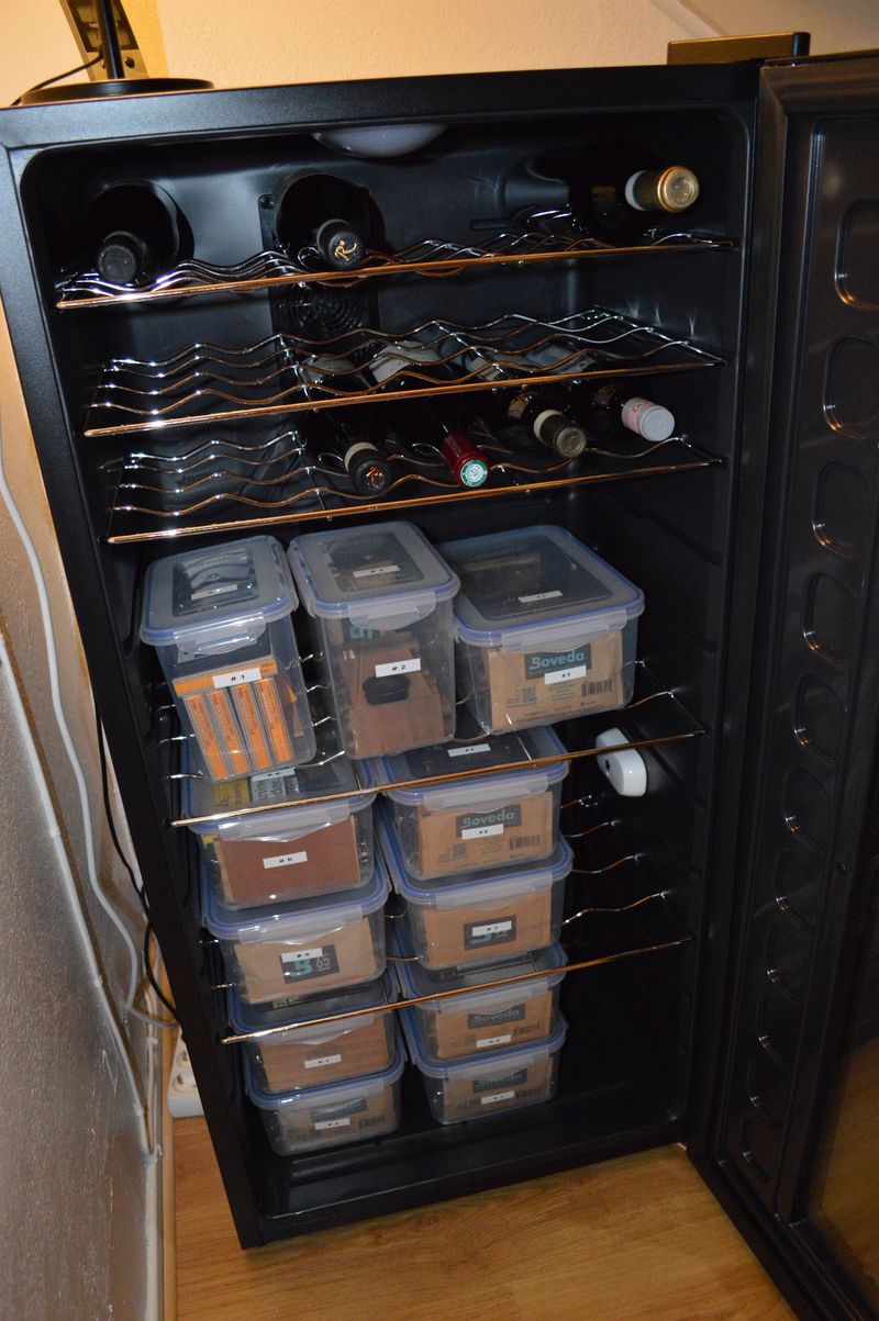 So instead I placed all the cigars inside a large wine cooler that we had. The maximum temperature on that was 18°C, so a bit too cold, but better than the alternative…