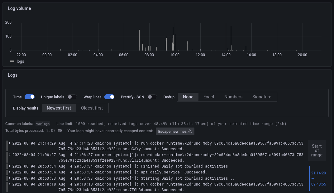 Instead I gave Grafana Loki and Promtail a try 👇