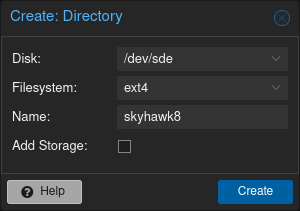 After installing the Skyhawk disk, I initialized it with GPT and created a directory: