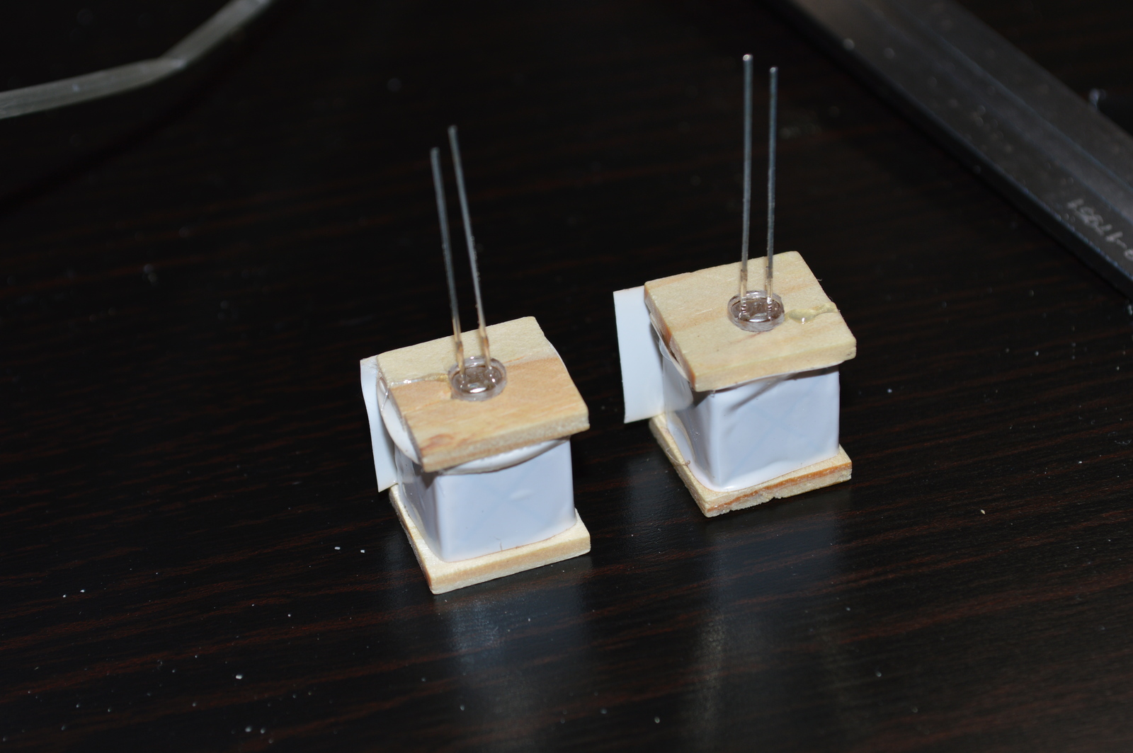 My mom has a miniature elf house that she takes out every Christmas, and it has become a tradition that all her grandkids partake in the elves moving in. She has tried to mount lights in it before, using a battery powered LED strip, but the lights turned out too bright, and the light was pretty cold. So I ordered some orange flickering candle-like LEDs from eBay and got to work 🙂