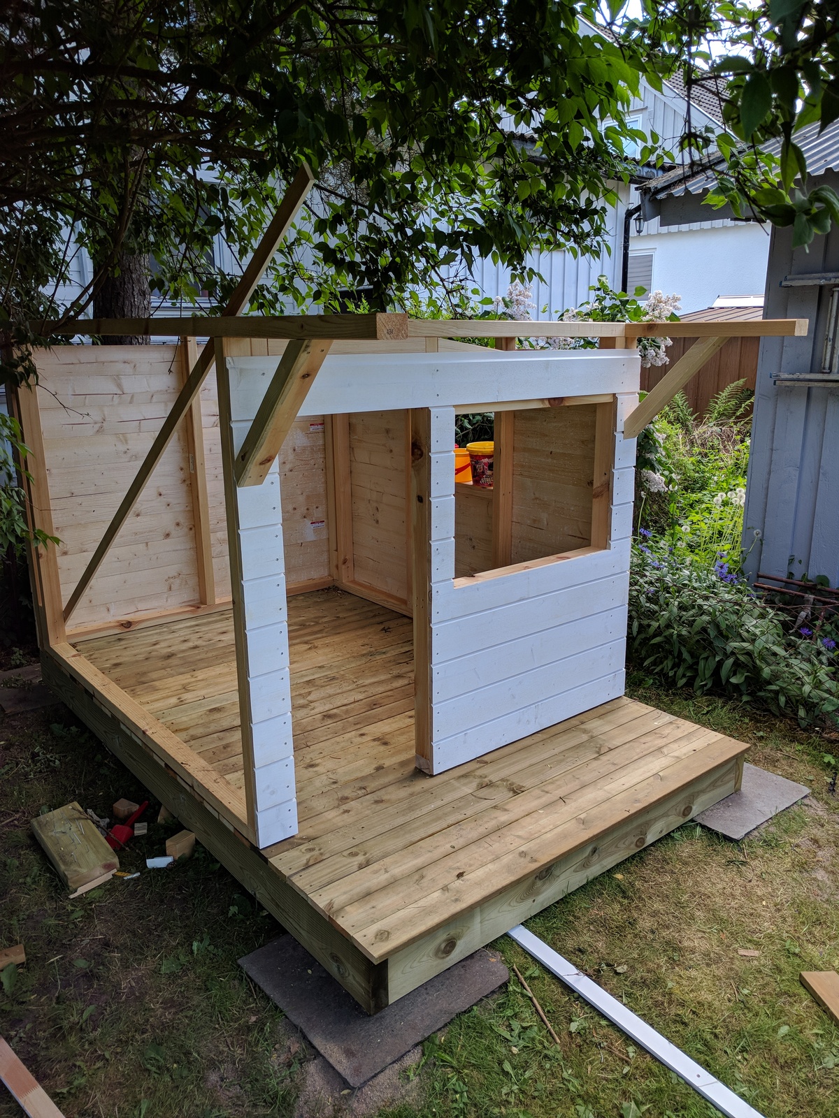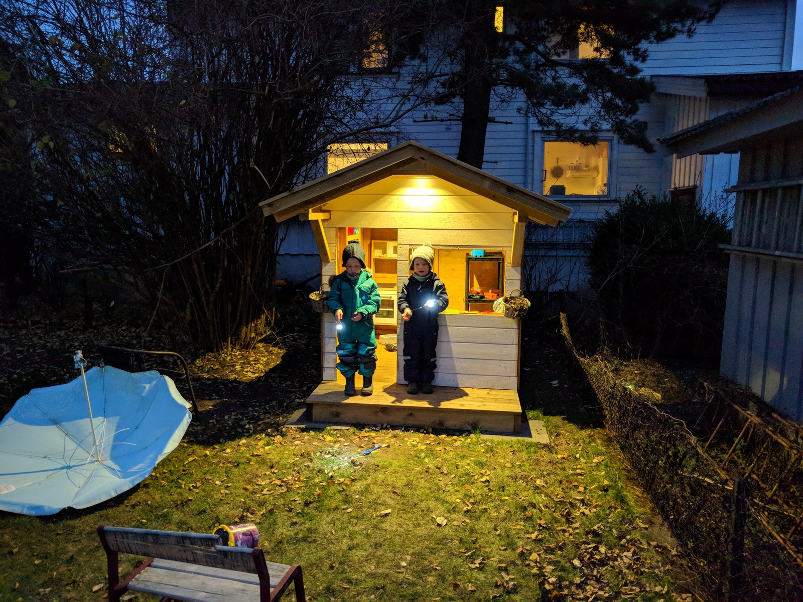 I built a garden playhouse, for the kids, and of course it needed some LED lights.