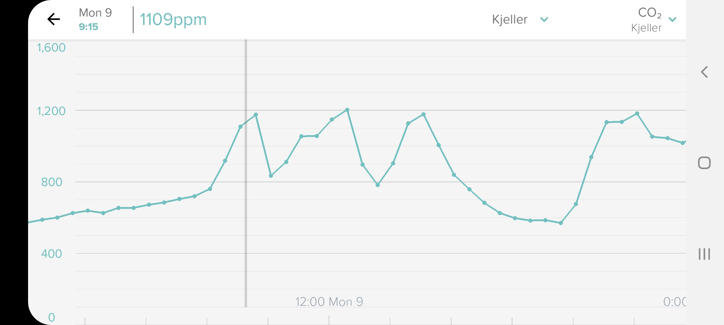 The CO₂ level quickly drops when it hits the 1200ppm threshold, ensuring that the air down here never gets too bad 🙂