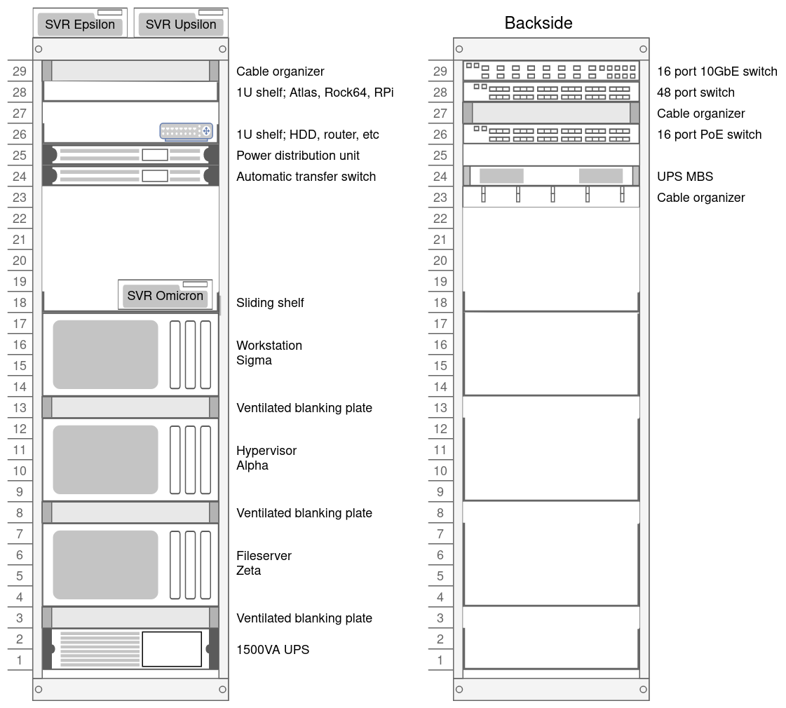I’ve got a tiny computer lab at home; a 29U rack with servers, UPS, ATS, PDU, 10 Gbit networking, OPNsense, and all the cool stuff.