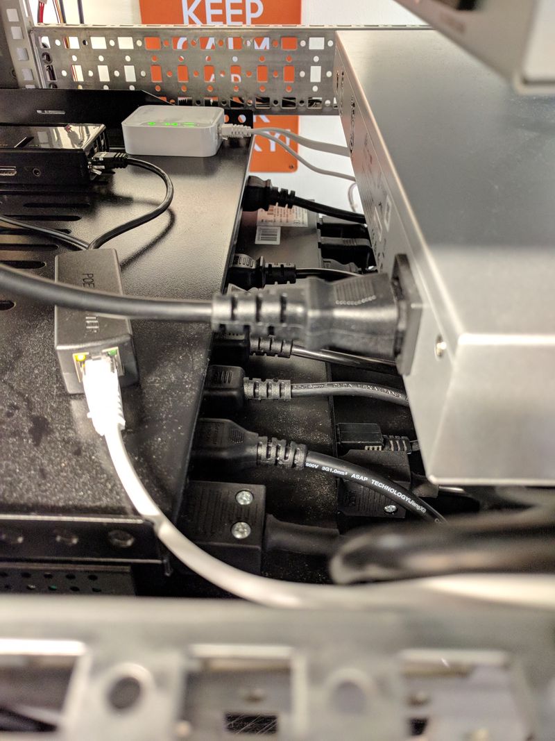 At the end of the power distribution chain, is the power distribution unit, or PDU for short. The PDU has eight C14 sockets that can be individually controlled and measured.