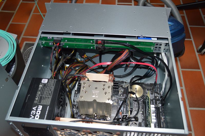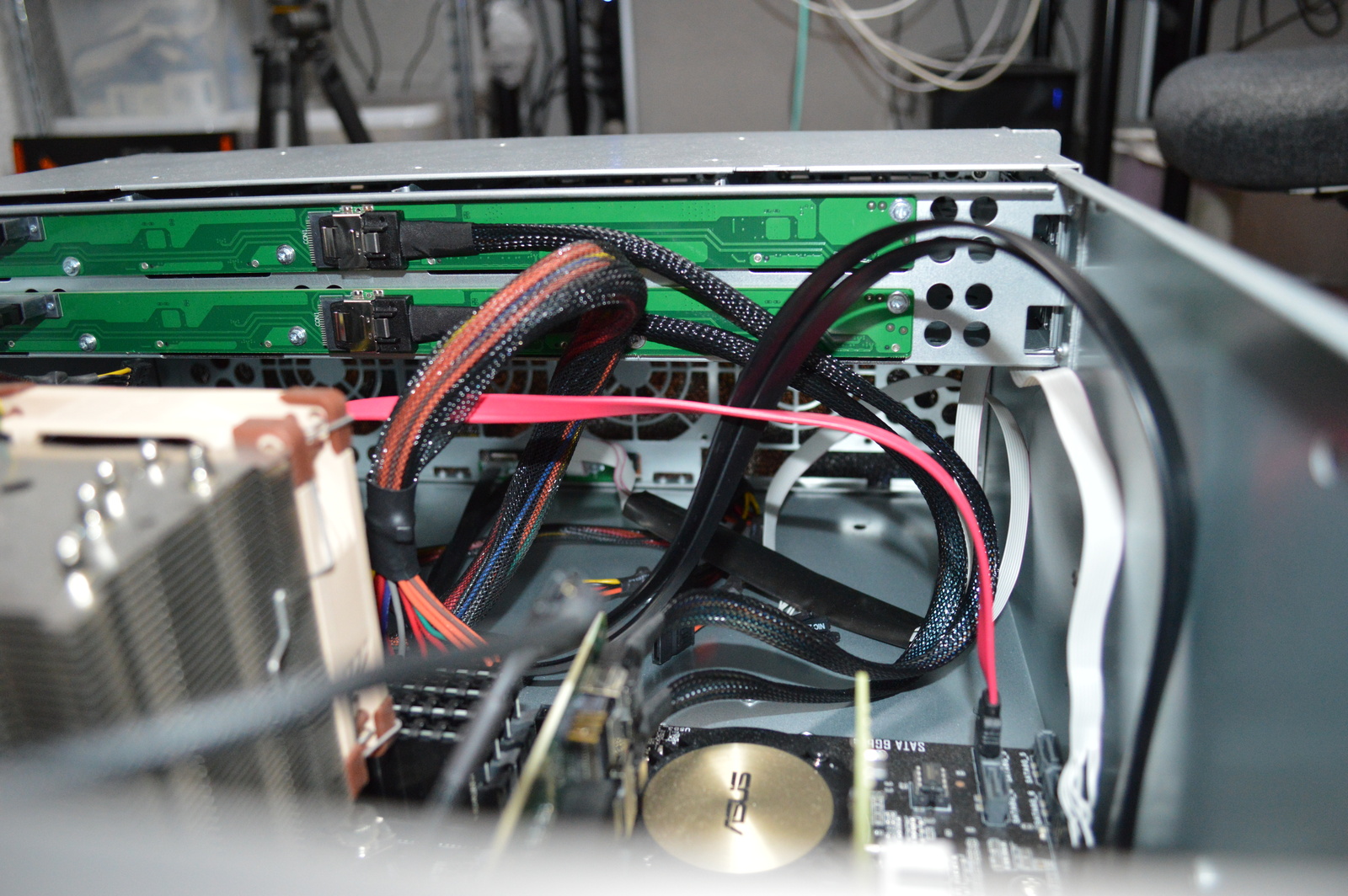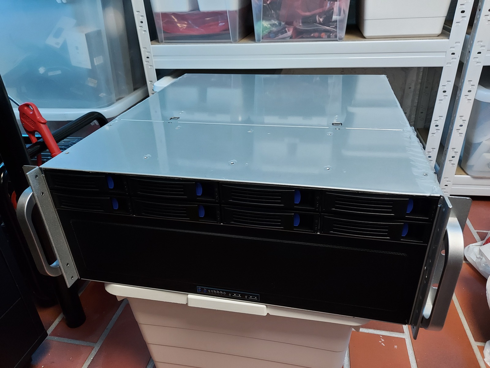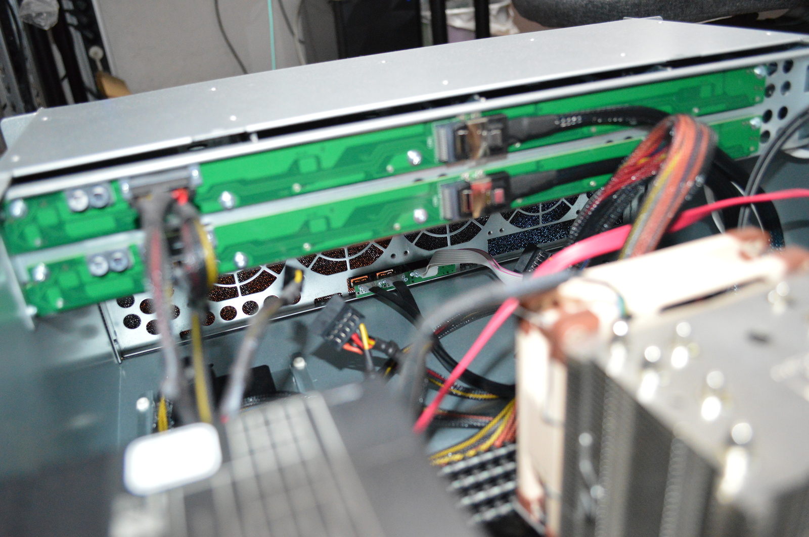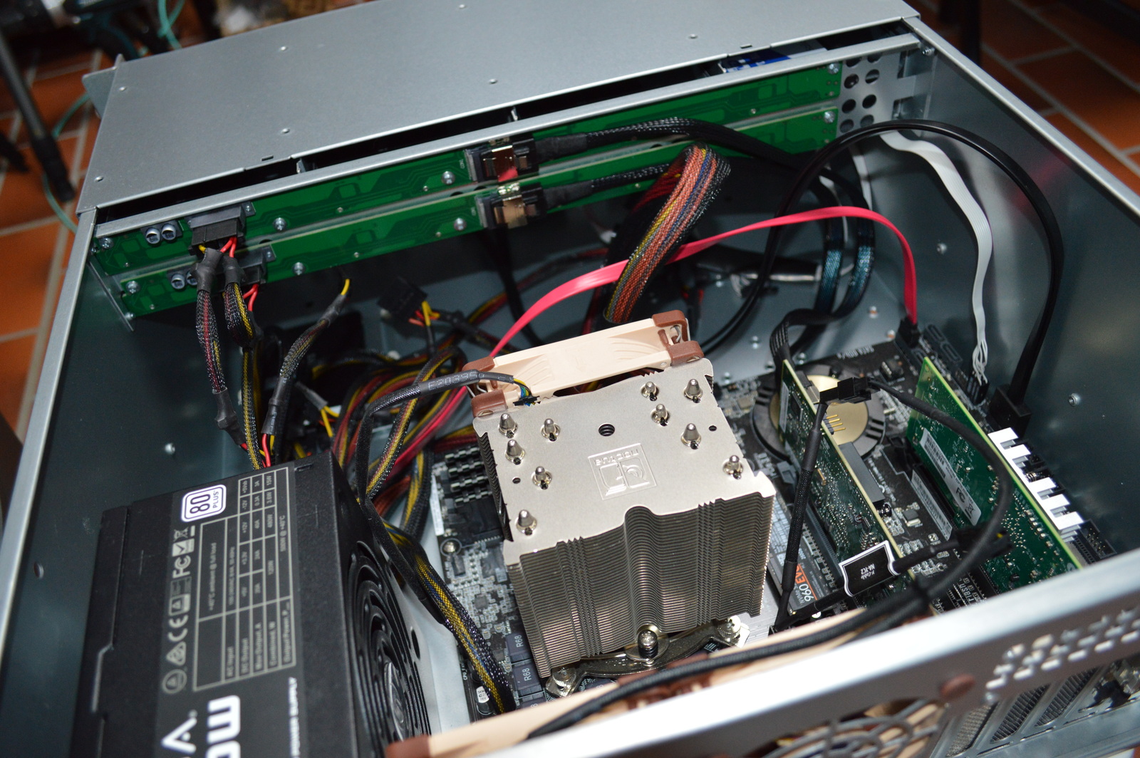 I’ve got yet another Inter-Tech rack mountable server case. I really wanted a few hot swappable disk bays in the front, and buying two removable 4-drive backplanes were more expensive than getting a new case 😮