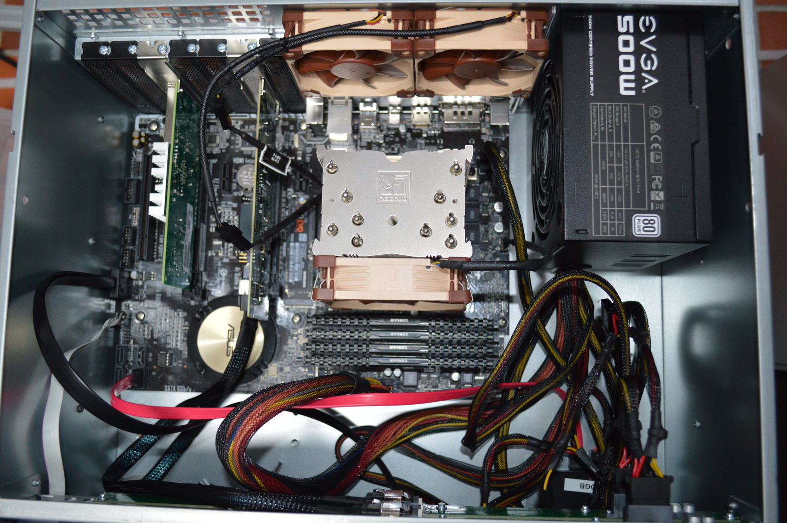 - Had a hard time attaching 2×80 mm Noctua fans. Had to grind off a screw thread on the case and modify one of the Noctua fans