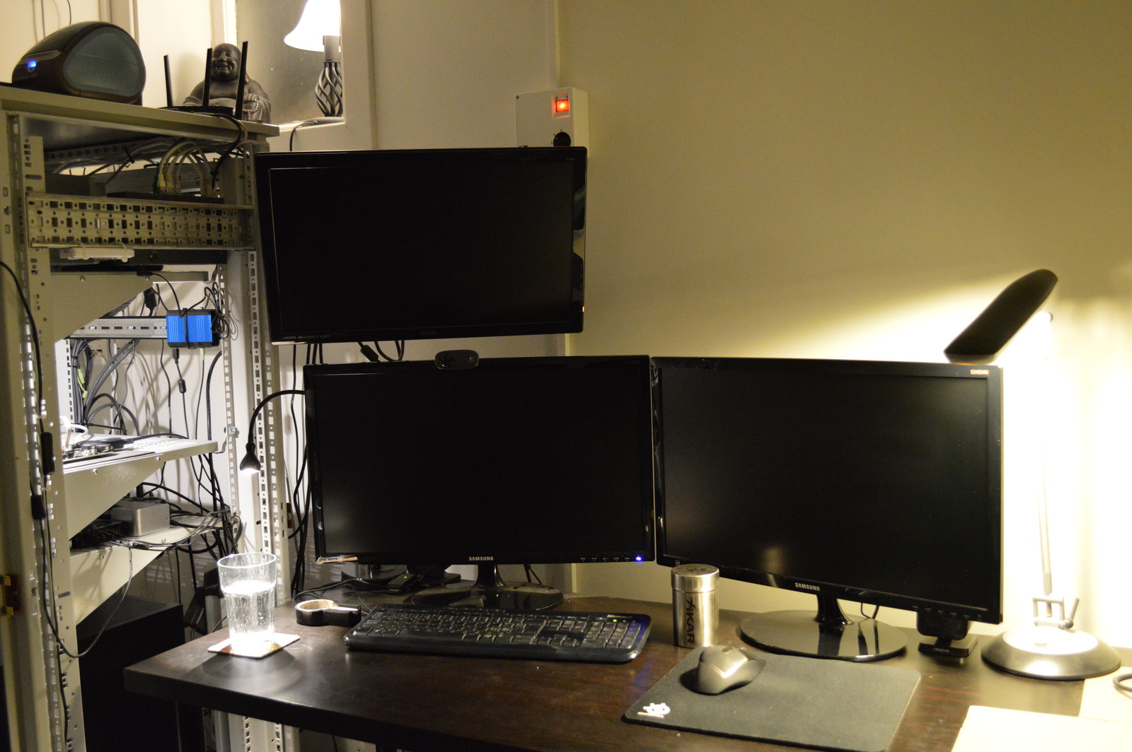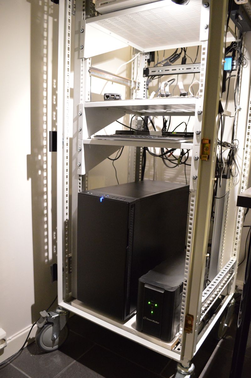 I’ve got all my computer equipment in a rack, that means that I can stack it vertically; which again makes it take up less space. And the whole thing is on wheels, so I can pull it out if I need access behind it.
