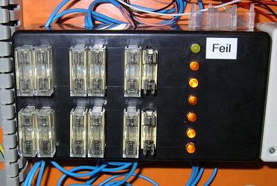 Each inverter output was connected to a failure LED and a OR gate, which was used to alert another monitoring module of a failed fuse. So the failure LED would indicate which circuit was broken, and the fuse failed output signal just meant that one or more circuits were broken.