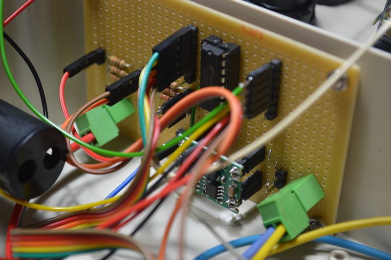 I then mounted the switches, LEDs, buzzer, and strobe and wired them to the prototype board.