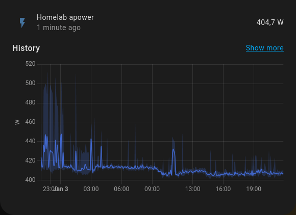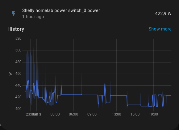 I’m using a Shelly Plus Plug S smart plug to measure the power usage of my homelab. I added it as a device in Home Assistant — and the power readings began! Kind of…