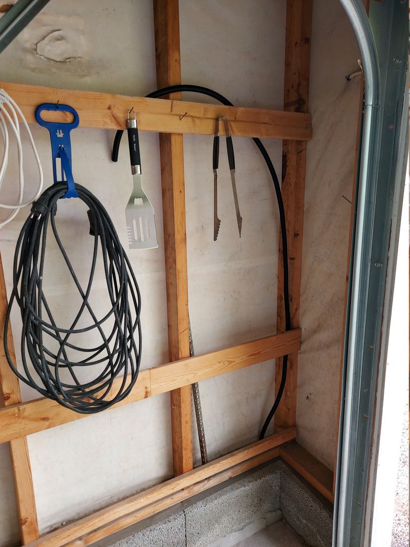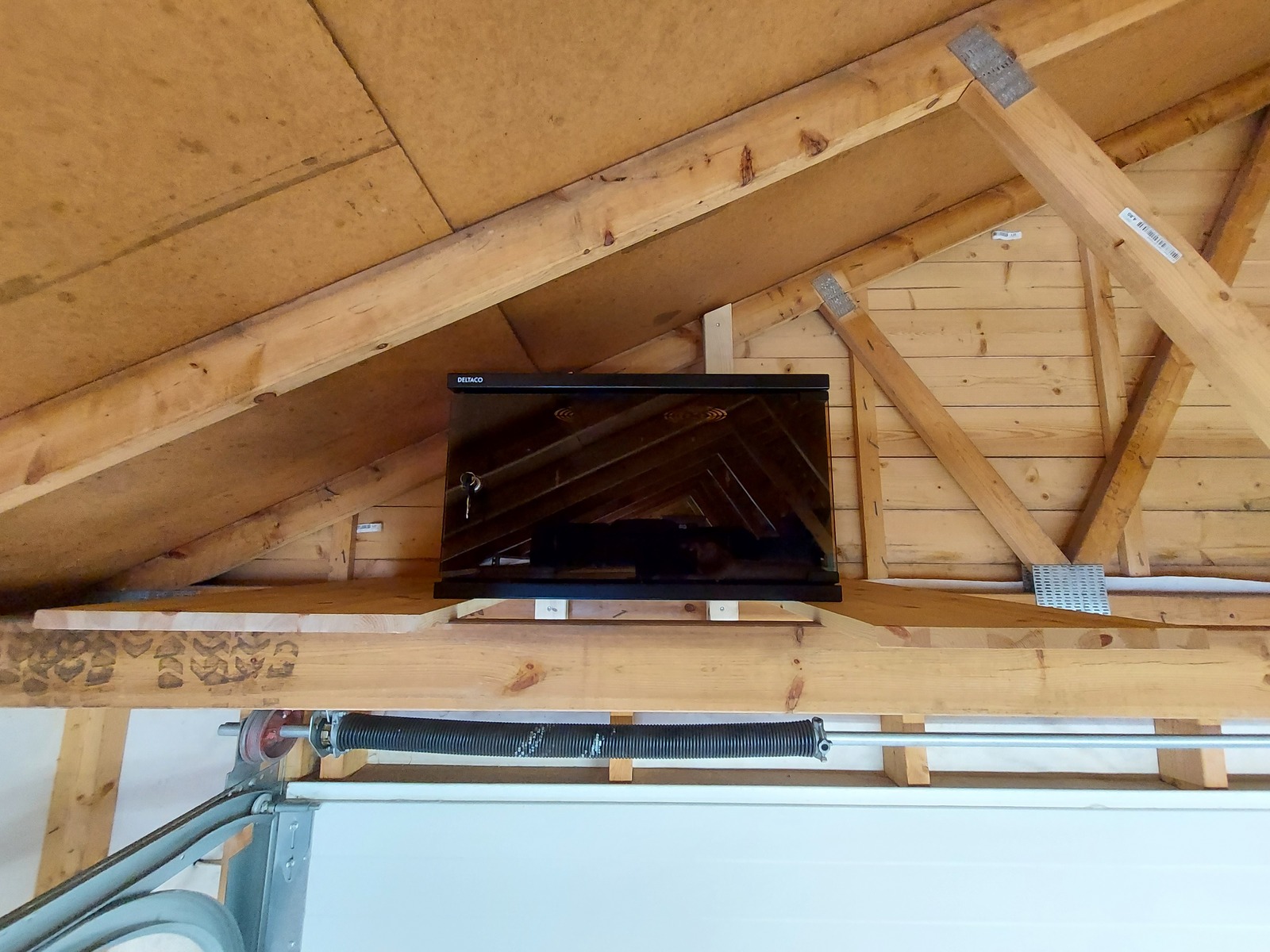 I wanted the cabinet on the north facing wall, as the south wall gets a lot of sun during the day. And I wanted it out of the way — I decided that above the garage door was a nice location.