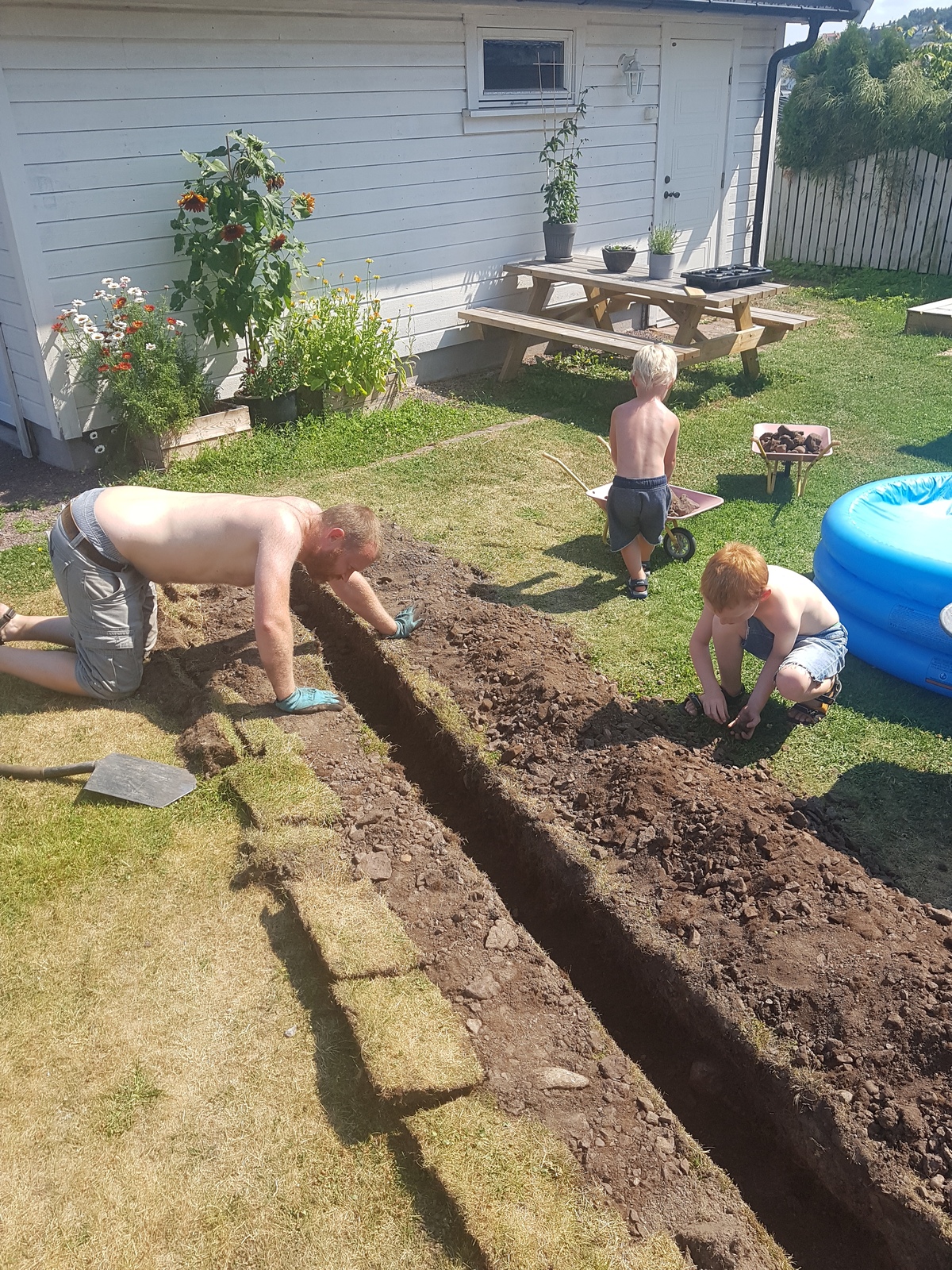 So the next day I enlisted the help of some additional workers — making the trench deeper and hauling the rocks away 👷