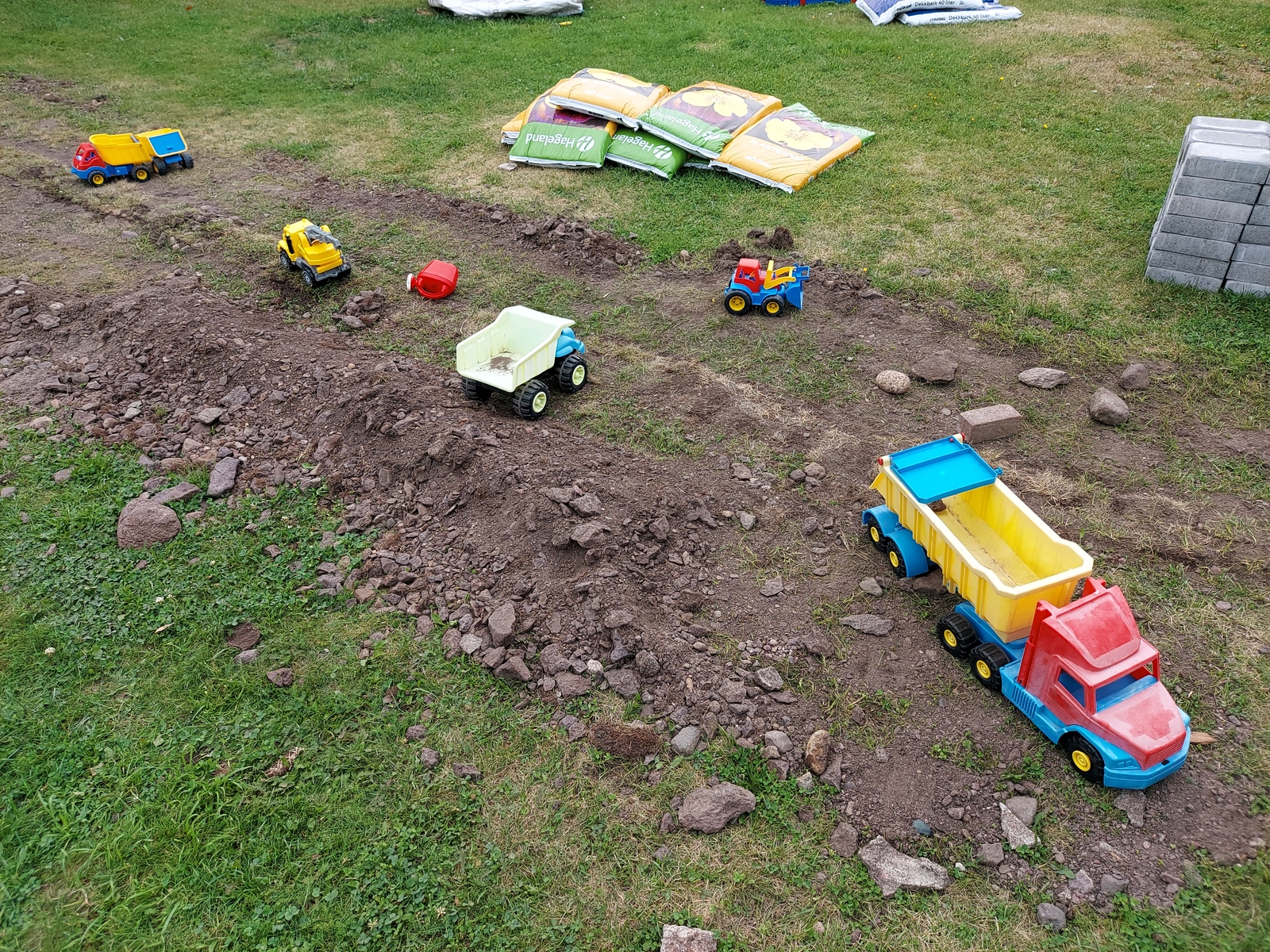 The kids had a lot of fun with the leftover soil and rocks, before it got cleaned up.