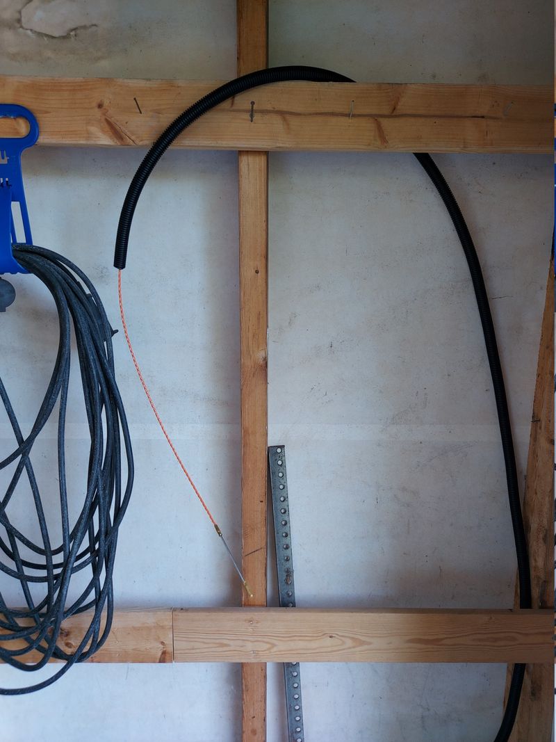 I was a bit worried that I wouldn’t be able to push the fish tape through, that it would get stuck in a 90° bend, or because of friction.