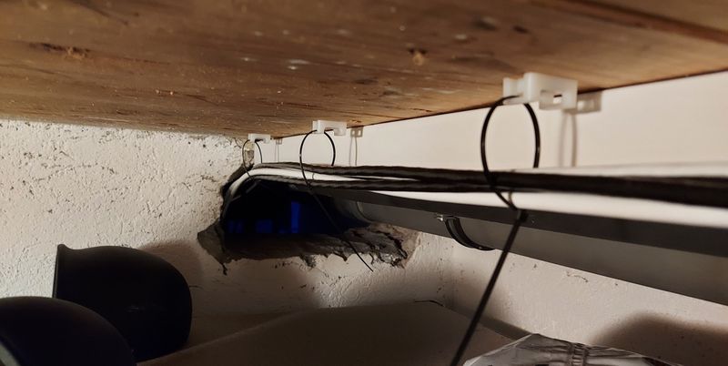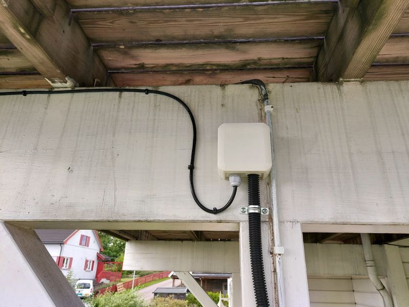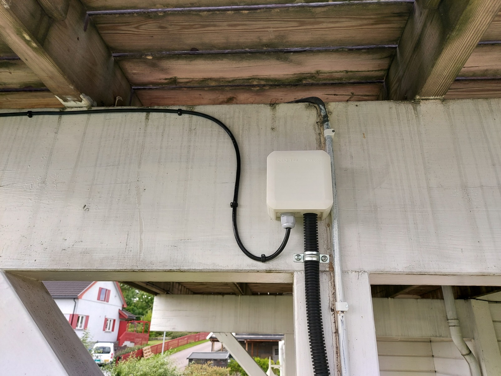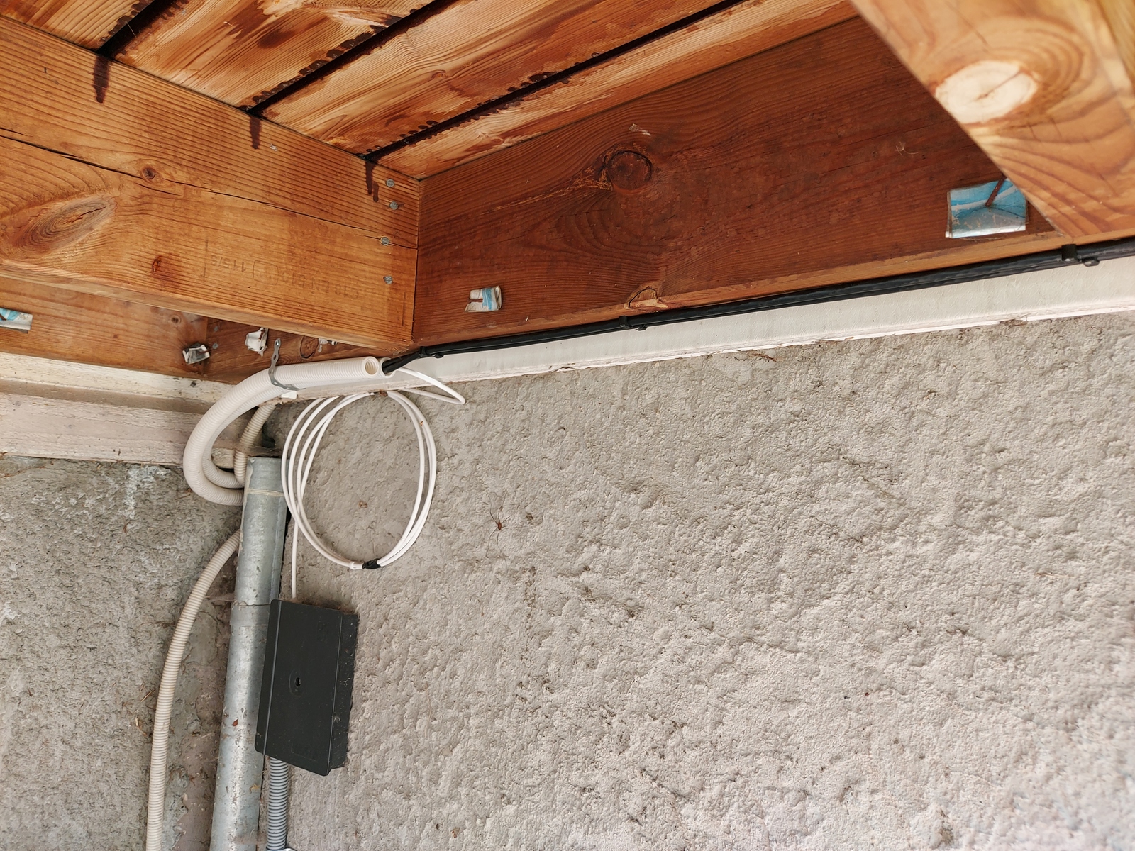 Continuing along the underside of the terrace, where it meets the cable from the outdoor access point. Then onto the wall of the house…