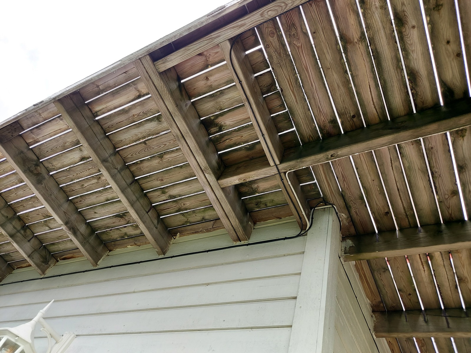 The power cable for the garage also starts at this support beam, but goes towards the rear of the garage, while I was going straight across — so there shouldn’t be any conflicts.