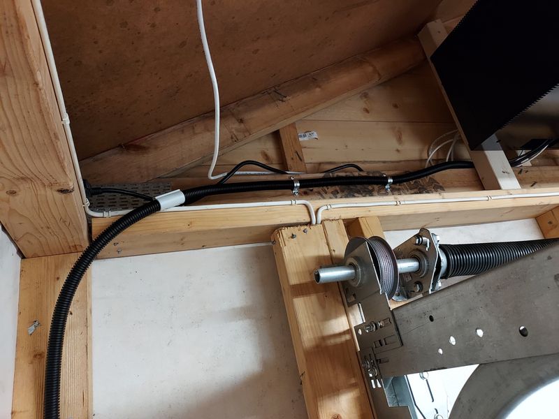 Then two lengths of metal cable guard going up the beam, totalling 2.4 meters. The guards covers both the new conduit and the existing power cable for the garage.