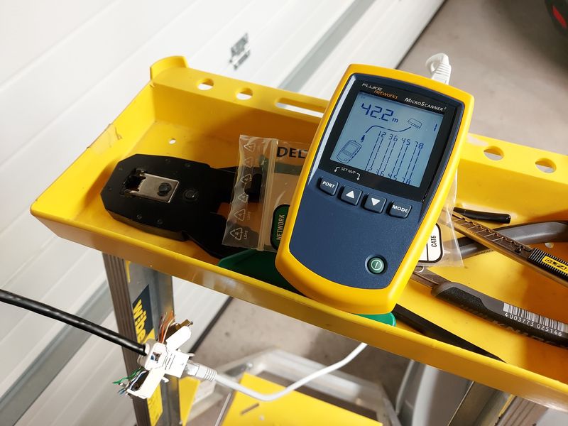 Nice! No crossed pairs 😃 The measured cable length is surprisingly accurate; the length markings on the cable shows that the run is 40 meters, and I used a 1 meter patch cable in both ends.