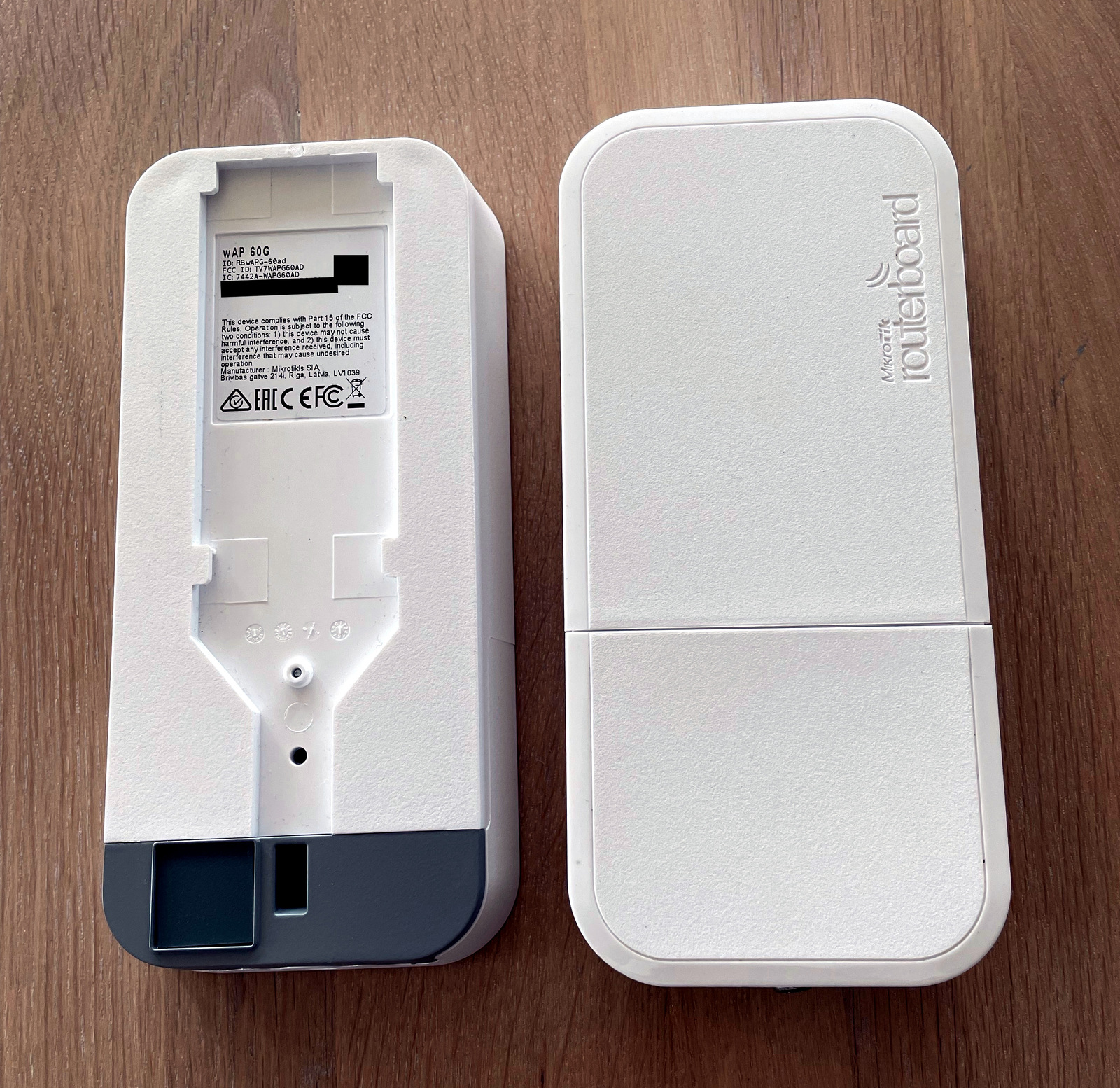 My initial plan was to set up a wireless 60 GHz link between the house and the garage, using a pair of MikroTik wAP 60G or Cube 60G ac.